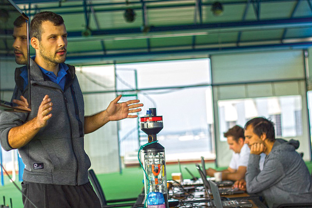 In his presentation titled “Underwater Localisation”, Frane Rogić spoke about a method often used to locate small underwater vehicles – the use of single range measurements from a known location combined with dead reckoning to calculate real-time localisation. As he pointed out, underwater localisation and navigation still pose a major challenge in underwater robotics, especially when reliability and accuracy are required. His research focuses on finding the most meaningful location for a single static beacon, ranging from it to an autonomous vehicle. This extends to the so-called breadcrumb algorithm, which he implemented by having an AUV add to its surroundings new static beacons with uncertain positions, which then provide new range measurements that help with the localisation problem.