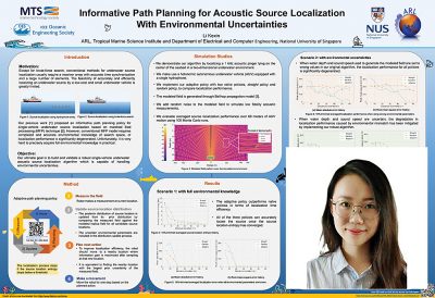 Given the pandemic-induced lockdowns and travel restrictions around the globe, this year’s Singapore and Gulf Coast OCEANS conferences were merged into a unified virtual event, Global OCEANS 2020, in ensuring continuity in the OCEANS conferences series. The SPCs of the constituent editions of the conference, however, were held independently, with 11 and 13 student participants in the Singapore and Gulf Coast editions, respectively. For this SPC, the participating students were required to switch to electronic posters. Poster formats were prescribed beforehand to ensure that the submitted posters were conducive for online presentations. The students were also required to submit a pre-recorded 5-minute video of their presentations providing a quick overview of their study orally. Interactions between participants and judges were facilitated via managed one-on-one Q&A sessions during the conference.