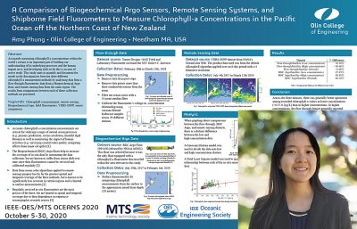 Abstract—Accurately measuring chlorophyll a concentrations within the world’s oceans is an important part of building our understanding of its underlying processes and the human impact on it, and developing tools to do this is an area of active study. Some methods used today to collect this data include in-situ fluorometers on board automated Biogeochemical Argofloats, flow-through fluorometers on board ocean going vessels, and ocean color algorithms applied to remote sensing data. While shipborne field fluorometers are the most accurate of the three since they can be recalibrated before and after each expedition, they are limited in spatial and temporal coverage due to their dependence on expensive oceanographic research cruises. The Biogeochemical floats help to increase the coverage of fluorometer data by automating the data collection, but are known to suffer from sensor drift over time since their fluorometers cannot be serviced and calibrated regularly. Remote sensing data has by far the greatest spatial and temporal coverage of the three methods, but is known to be significantly less accurate in certain regions and is limited to surface measurements. This study compares these three measurement methods by analyzing data collected by a 10AU Field and Laboratory Fluorometer connected to a flow-through system, data from a Biogeochemical Argo float, and satellite data from the VIIRS-SNPP dataset in the same region. The results of comparisons between each of these collection methods are presented.