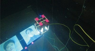 Given the freedom to choose our own AI mission, we wanted to set an exciting and technically interesting topic. Currently, the world is under the threat of COVID-19, so we thought that a mission related to it would be attractive. Based on our slogan, “No exception to prevent infection,” our mission was to identify the faces without a mask with a computer vision (CV) algorithm and cover the faces with a mask with artificial intelligence using an underwater robot. We installed three portraits and a mask station in the 8m on a side cubic water tank in the Institute of Industrial Science, the University of Tokyo [Figure 2]. One of the portraits wore a mask, and the other two did not. The funnel-shaped mask station aligns the robot, such that it can dock regardless of a small position error.
