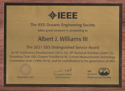 It was an honor to present this year’s Distinguished Service Award to Albert (Sandy) J. Williams, 3rd. Sandy was chosen for his long involvement with OES Technology Committees as well as with the Joint Oceans Advisory Board (JOAB), guiding the development of these regular OCEANS Conferences and Exhibitions.