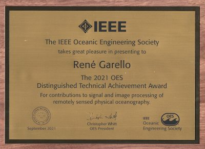 The Oceanic Engineering Society honored René Garello with this year’s Distinguished Technical Achievement Award for contributions to signal and image processing of remotely sensed physical oceanography.