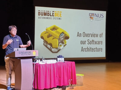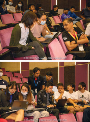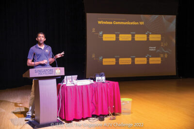 Following SAUVC 2022, a student workshop on autonomous vehicles and sensing technologies was organized on 26 March at the Singapore Polytechnic. The objective of the workshop was to complement the hands-on learning the students obtained during the competition, with talks and hands-on workshops on technologies related to marine robotics. Mentoring from expert student teams, and networking were the other objectives. This also goes hand-in-hand with outcomes #6 and #7, and challenges #9 and #10 of the UN Decade of Ocean Sciences, which has endorsed the SAUVC and the AMV workshop.