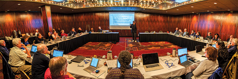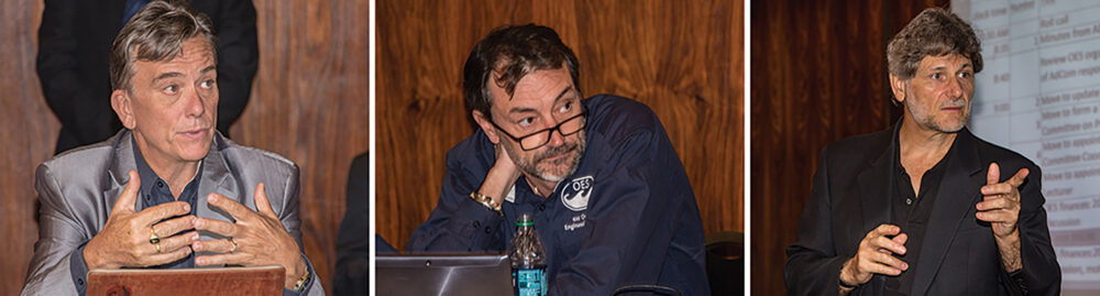 When most of us attend an OCEANS conference, we don’t see what goes on behind the scenes to keep the OES running smoothly. One of our primary meetings at OCEANS is the Advisory Committee (AdCom) meeting that also includes our Executive Committee members. Lots of issues and points to be made by your elected AdCom members. For example, see the following photos from the OCEANS 2017 Anchorage meeting. Thanks to all our volunteers.