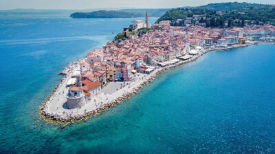 Piran is a town known for its medieval architecture, with narrow streets and compact houses founded well before the Roman empire incorporation in 178 BC year. The first documented description of Piran is found in text by a cleric of Ravenna, Italy, in the 7th century AC. Its name is likely to come from the ancient Greek work “πυρρός” meaning flame-coloured, yellowish-red because in the area there were some red natural stones.
