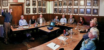 On May 2, 2019, members of the IEEE Providence Section and the OE22 Chapter gathered at White’s Restaurant in Westport, MA for a joint social half-hour and dinner before attentively enjoying the technical presentation “Free Wind or Bought Wind?: Shifting Power Generation at Sea over Two Centuries.” The lecturer, author John Laurence Busch, is an independent historian who focuses upon the interaction between humanity and technology, specializing in 1st and early 2nd generation steam-powered vessels. His book on the first steamship in history, entitled “STEAM COFFIN: Captain Moses Rogers and The Steamship Savannah Break the Barrier,” has received positive reviews from over two dozen periodicals and academic journals in the United States, Canada, the United Kingdom and Australia. For more information, visit www.steamcoffin.com.