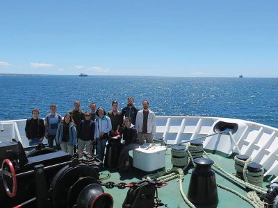 During the days 26 to 30 of November 2018, the post-degree course “Introduction to Underwater Acoustics” was carried out at the city of Puerto Madryn, Chubut, Argentina. This course was given at the CENPAT (Centro Nacional Patagónico). Daniel Rodriguez, PhD (UDE, Spain) and Noela Sánchez Carnero, PhD (CESIMAR-CENPAT, Argentina) were the professors in charge. The course covered the theoretical principles of sound propagation in underwater environments, SONAR fundamentals and the working principles of the most common acoustic equipment for hydrographic, bottom and sub-bottom structures and fishery studies. A practical session on gathering and post-processing of Single Beam and Side Scan SONAR data was also carried out. The course concluded with a guided visit to the BIP Víctor Angelescu (INIDEP) and the oceanographic vessel ARA Austral (Q-21) moored at the local Luis Piedrabuena dock. Several professionals of diverse disciplines: physics, biologists, a geologist and engineer members of different institutions, participated in the course. Among these institutions were: INIDEP, Argentinean Antarctic Institute, CENPAT, INTELYMEC (FIO-UNCPBA) and other Nationals Universities. The IEEE OES sponsored some of the attendees.