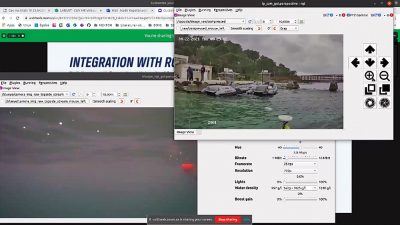 Screen capture of the live demo. Left: Blueye ROV-ROS2 graphical user interface used for video streaming and controlling the ROV. Right: Video stream from ASV Korkyra’s surveillance IP pan-tilt-zoom camera showing the ROV in front of it