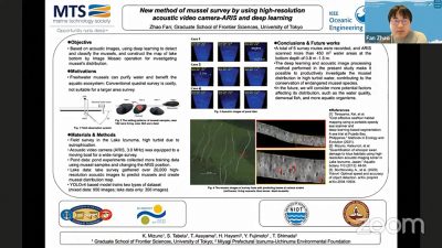 Abstract—Due to water transparency, water depth, and higher labor demand, conventional methods for the underwater survey (e.g., optical sensing and quadrat survey) have their limitations. Thus, to overcome these barriers, this paper proposes a method of acoustic sensing which uses the high-resolution acoustic video camera-ARIS to visualize the lake bottom and investigate the distribution of mussels. The New underwater sensing method produces near-video quality acoustic images for constructing the map by Image Mosaic Operation, which can be helpful for assessing the status of mussels. Convolutional Neural Network(CNN) shows its help in the detection and classification of mussels in this study. Meanwhile, the accuracy and efficiency of the well-trained deep learning model manage to improve this research. Through the field survey, the proposed method successfully obtained the distribution maps of mussels in Lake Izunuma.
