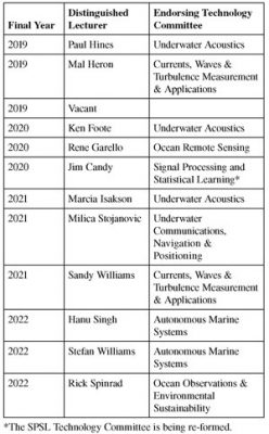 The DL Program has a modest budget that allows the Distinguished Lecturers to vary their schedules to provide technical talks to OES Chapters, IEEE Sections and other institutions as the opportunities arise. Look on the web site <ieeeoes.org> for topics and biographies. Communication is a 2-way stream but the DLs do not know what your Chapter or Section would like until you contact them. The DL Program is there for you to use—and the ball is in your court.