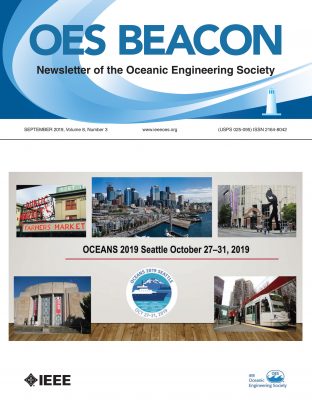 Jim Gant was the OESNL Editor from 2009 to 2014 and Fred Maltz continued on as Consulting Editor. Marinna Martini took on the position of editor of the newly created e-newsletter. The e-NL was created to provide for rapid distribution of time-critical items between the quarterly issues of the NL. Marinna passed the torch to Toshihiro Maki for the 2014-2015 years. As the OES activities increased in number and variety, the size of the OESNL expanded. Listings of names of new members joining OES during the previous 3-month period began to appear. Each issue following an OCEANS conference continued to contain photos and poster abstracts for each student in the Student Poster Competition, along with the full paper from the first-place student winner. On the 100th anniversary of the sinking of the Titanic (the July 2012 NL issue) an interesting article appeared by Joe Vadus on events onboard the Titanic leading up to its sinking. Memorable antidotes of deceased OES members appeared during Gant’s editorship, including on Neil Brown, Albert Bradley, Rodney Coates, and Bill Carey. Student competitions were described, including International Submarine Races (U.S.), underwater autonomous vehicles (SAVe/India & SAUC-E/Europe), Underwater Robot Competition/Japan, and National Ocean Science Bowl (NOSB/USA). The increasing number of conferences, symposia and workshops sponsored by the OES were announced and reported, including UT/China’09, Japan’11, India’13; SYMPOL/ India’09, ’11, ’13; Baltic’08, ’10, ’12, ’14; AUV’12, ’14 ; Chile-U.S.’08 Workshop, Techno-Ocean’12; OTC U.S., Brazil, Arctic; GEOSS; and others. In 2015, The OESNL was given a new name, The OES BEACON, Newsletter of the Oceanic Engineering Society.