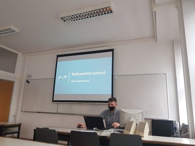 Nadir Kapetanović giving a lecture about bathymetry