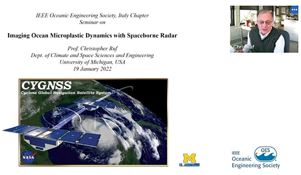 The first webinar, entitled “Image Ocean Microplastic Dynamics with Spaceborne Radar” was presented by Prof. Christopher Ruf, from the University of Michigan at Ann Arbor, USA, on January 19, 2022, at 3.30 CET.