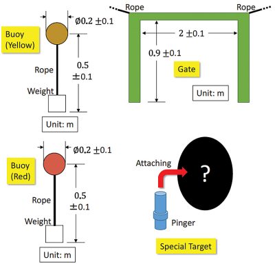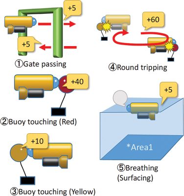 Regular missions are a “course round trip”, “touch to buoys”, “underwater gate passage”, and “dive / surface”, as shown in Fig. 2.