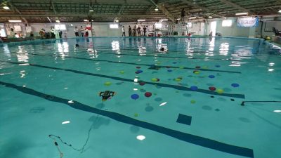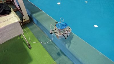 In the junior section, each team competes the performance of their robots and skills. Each team developed the robot before the convention using a kit provided from the committee. On the first day, they conducted an operation test of their robots. On the second day, they competed to control the robot, pick up empty cans on the pool floor, and competed their ability to operate the robot.