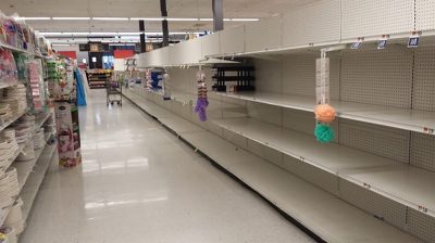 Friends shopped for us (and for the two very picky eaters), delivering groceries to our front stoop while we waited inside. Once they were done unloading and had retreated to the driveway, we could “talk” over a 5- to 10-meter separation and then move the groceries inside. One couple was able to score a desperately needed pack of toilet paper for us by getting to a store before 0600 one morning. I found it by the door, unannounced and unexpected, when I got up early to let the dog out. My definition of real friends gained a new requirement that morning (Figure 1).