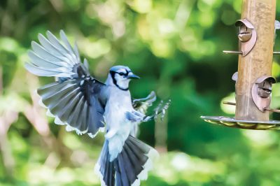 Using his Nikon Z6 camera with a telephoto lens, Mr. Chamberlain captured images of cardinals, sparrows, chickadees, blue jays, grackles and many other birds in various stages of flight and feasting. He adjusted the shutter speed on his camera to one-five-thousandth of a second to photograph a hummingbird as it hovered above a feeder in his yard: the normally blurred buzzing of its wings frozen in time.