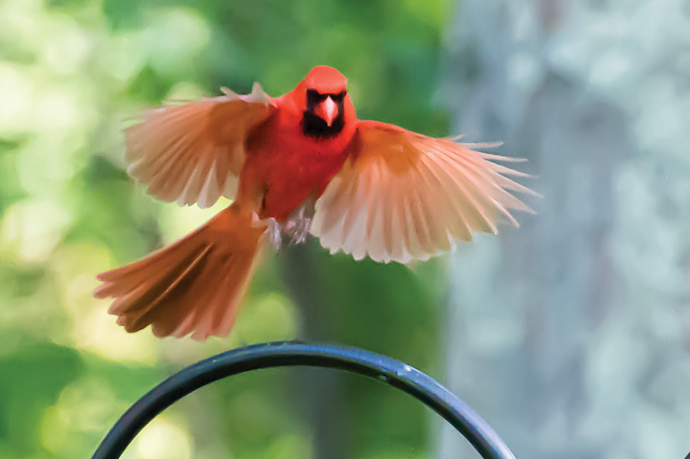 Using his Nikon Z6 camera with a telephoto lens, Mr. Chamberlain captured images of cardinals, sparrows, chickadees, blue jays, grackles and many other birds in various stages of flight and feasting. He adjusted the shutter speed on his camera to one-five-thousandth of a second to photograph a hummingbird as it hovered above a feeder in his yard: the normally blurred buzzing of its wings frozen in time.