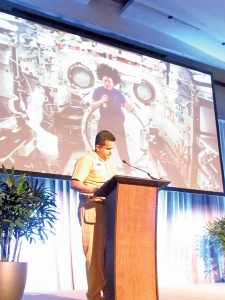 Finally, Rear Admiral Michael Silah, led a discussion about the role of space in ocean research. Rear Admiral (RADM) Silah, Director of the NOAA Commissioned Officer Corps and NOAA Office of Marine and Aviation Operations, addressed questions about information from satellites and from the research conducted on the International Space Station. He also moderated a live discussion with NASA astronaut Serena Auñón-Chancellor (MD), who is currently stationed on the International Space Station and is studying our oceans from space.