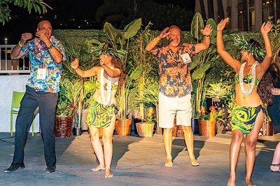 Regardless of the long hours in technical sessions and exhibits, the end of the day on Wednesday was a tremendous success. Plenty of Polynesian food and beverages, Hawaiian dancers and Fire Knife Entertainment.
