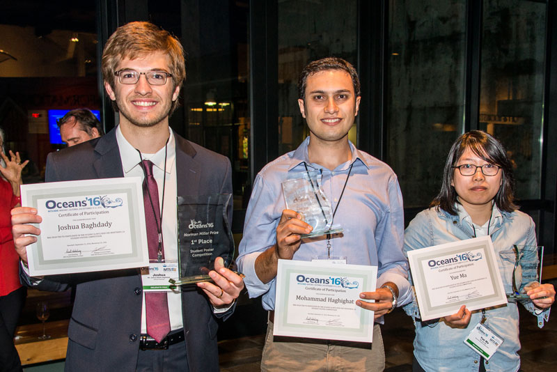 The posters were judged by a team organized by IEEE OES and the local chair. The roster of students and their schools are (in order of appearance of the Program Book):